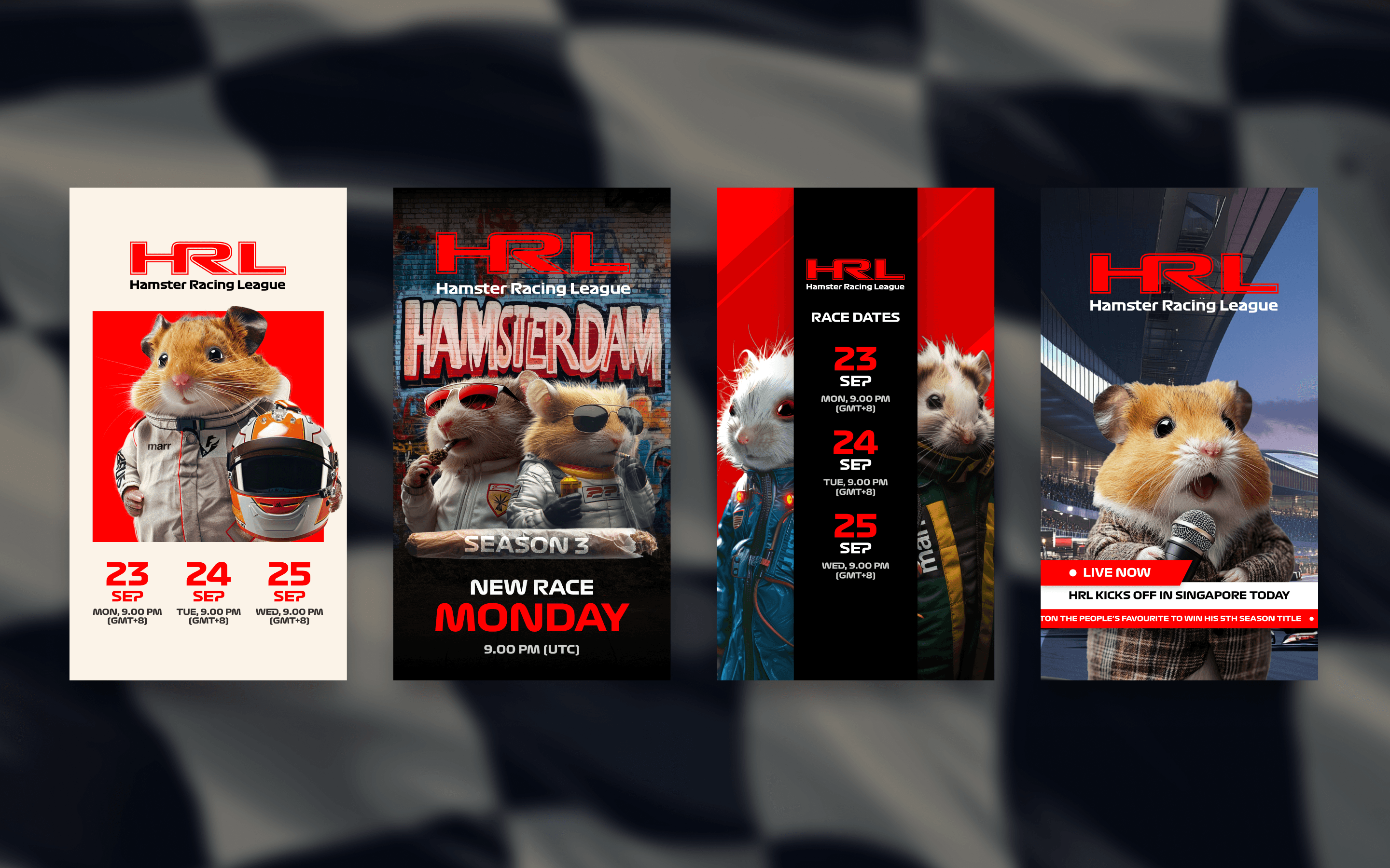 Having previously co-designed the brand for HRL Season 1 alongside Ash (then Head of Design at We Discover), I stepped up to lead the full brand expansion across new leagues and platform touchpoints. I also led the social content and F1-timed marketing for HRL Season 2 (Hamsterdam), pushing engagement during the 2024 Singapore Grand Prix.