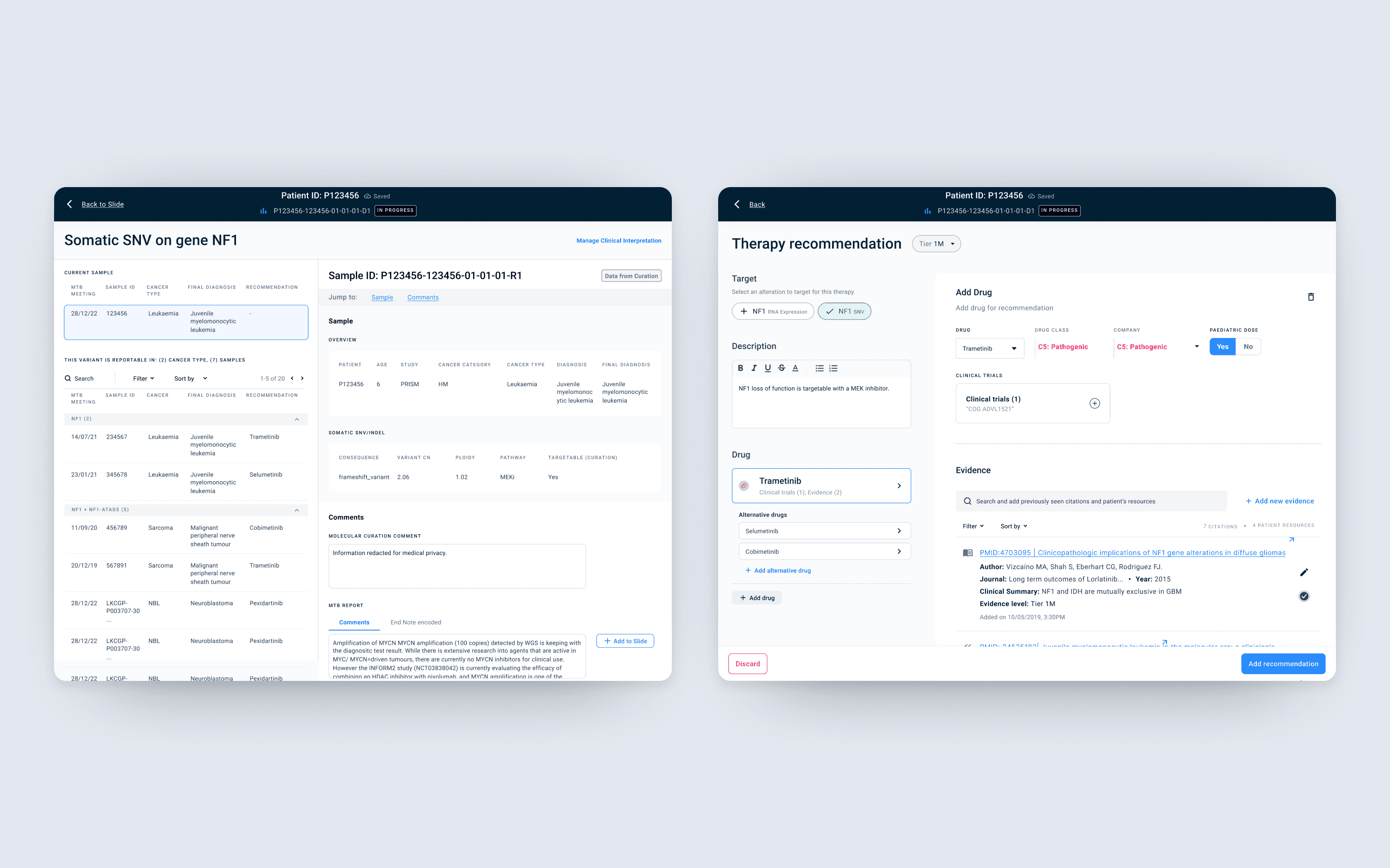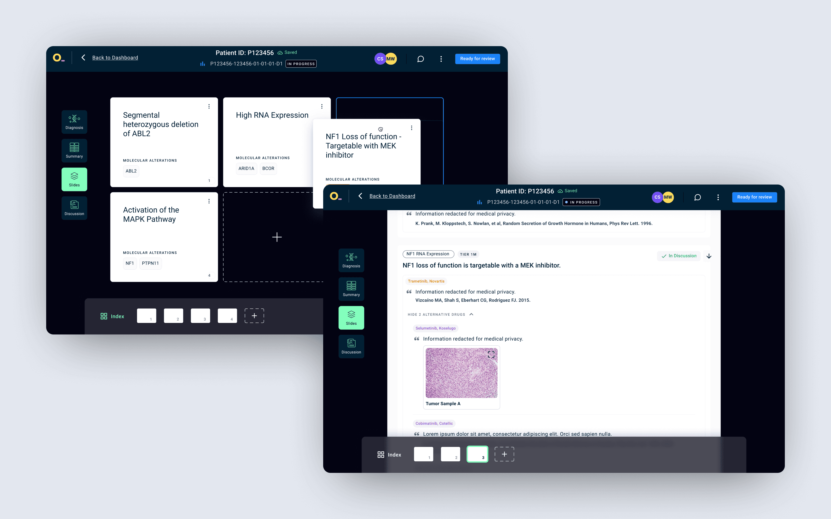 We built a custom slide builder using fixed templates for MTB presentations. Clinicians could add findings, hypotheses, and references directly within the platform.